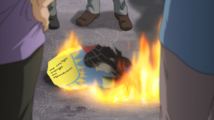 La nouvelle se répand dans le pays, où cohabitent tant bien mal conservateurs et réformistes... Bien entendu, on suspecte vite ces derniers d'avoir fomenté l'enlèvement. Des manifestations en opposition à Marina Ismaïl, figure de proue de la réforme, s'organisent tant est si bien que le spectre de Celestial Being commence à planer sur cet embryon de guerre civile. La Princesse a en effet beaucoup de mal à expliquer à sa population traditionaliste qu'il faut désormais s'en remettre aux instances mondiales qui l'ont si longtemps laissée s'embourber dans les guerres solaires de ces vingt dernières années.