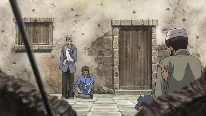 L'Enact d'Ali Al Saachez sort de sa cachette, et le pilote reconnaît immédiatement la machine du petit kurde. Ceci explique pourquoi il a été retrouvé. Setsuna entame alors un combat aux allures de règlement de comptes : pourquoi Al Saachez guerroie-t-il sans cesse ? La République du Kurdistan est pourtant morte ! Le mercenaire fuira avant d'apporter des réponses au Meister... Un peu plus tard, Lockon et Hong Long, délivrent Massoud Rachmadi, après quoi l'Exia passe le prendre pour le ramener au palais royal de la capitale, et ce à grand renfort d'annonces ! C'est un plan de Sumeragi...