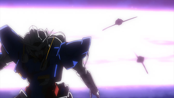 Setsuna F. Seiei charge les Trinity à bord de son Exia ! Pour lui, ce ne sont pas des alliés, et leurs machines ne sont en aucune manière des Gundam. Un temps décontenancé, Johann donne ordre à son jeune frère de répliquer aux assauts du Meister de Celestial Being. Celui-ci se débarrasse facilement de la salve de Crocs GN lancée contre lui, mais se retrouve exposé à une attaque mortelle... C'est alors qu'un énorme rayon laser déchire le ciel : le Gundam Virtue arrive à la rescousse ! Et l'impensable se produit, Setsuna et Tieria Erde combattent ensemble, côte à côte. Les Trinity peinent face à ces adversaires...