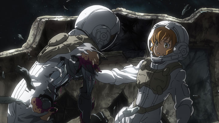 Dans la foulée, Christina ment à Feldt pour qu'elle rejoigne les deux vétérans. Dès qu'elle arrive au container, celui-ci se détache. La jeune fille est en sécurité, ce qui n'est pas le cas des deux autres membres d'équipage. Un GN-X tire à bout portant sur le pont du Ptolemaios. Lichty vit ses derniers instants alors que son corps déchiré montré qu'il est à moitié robotisé. Il rend son dernier souffle dans les bras de Christina qui, mortellement touchée elle aussi, adresse un dernier message d'espoir à Feldt. Le navire explose. Face à l'Alvatore, Setsuna n'a plus le choix : le Gundam Exia va éliminer sa cible !