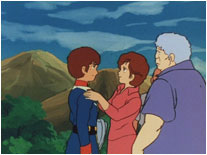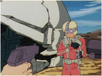 L'escarmouche opposant Garma et son Gaw aux Forces Fédérales tourne rapidement à l'avantage de Zeon même si le tout est assez disputé. Bright Noah va trouver Amuro pour lui dire ses quatre vérités, il lui dit à quel point il est déçu et le baffe (chose que Bright fait à merveille :-)) puis lui en colle une autre. "C'est en prenant des coups qu'on grandit". Cela sert d'électrochoc à Amuro qui se ressaisit et retourne vers le Gundam. Char décolle à son tour et un autre duel éclate entre eux où "la Comète Rouge" commence à sentir la réelle menace que représente son ennemi. Finalement, les forces de Zeon se regroupent afin de préparer une autre attaque ultérieure.