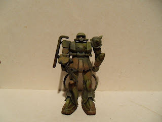 Alors pour commencer , un appret noir sur tout le meka , ensuite une première teinte vert ( camo US ) partout suivi de motifs en bandes en verts plus foncés et en marron.
